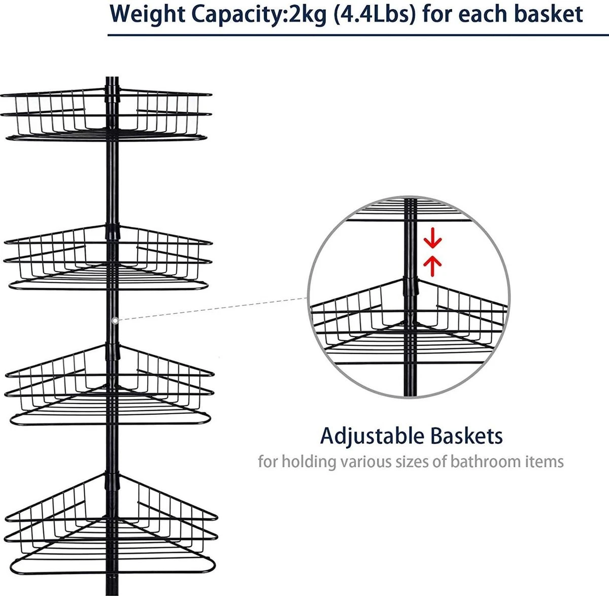 Heb je ook een zwart doucherek nodig in je douche? Geen zin meer in shampoo flessen en rotzooi op de grond in je douchecabine? Of flessen die in de directe waterstraal staan, waardoor je shampoo of douchegel vermengt is met water. Met dit Zwarte doucherek 4 laags kan je moeiteloos je shampoo flessen, douchegel en of wisser plaatsen in de 4 aanwezige mandjes, en op elk gewenste plek binnen handbereik over je douchecabine hangen. Je kunt hem ook gebruiken aan de buitenzijde van je douchecabine, om je verzorgingsproducten zoals tandpasta of creme in op te bergen.