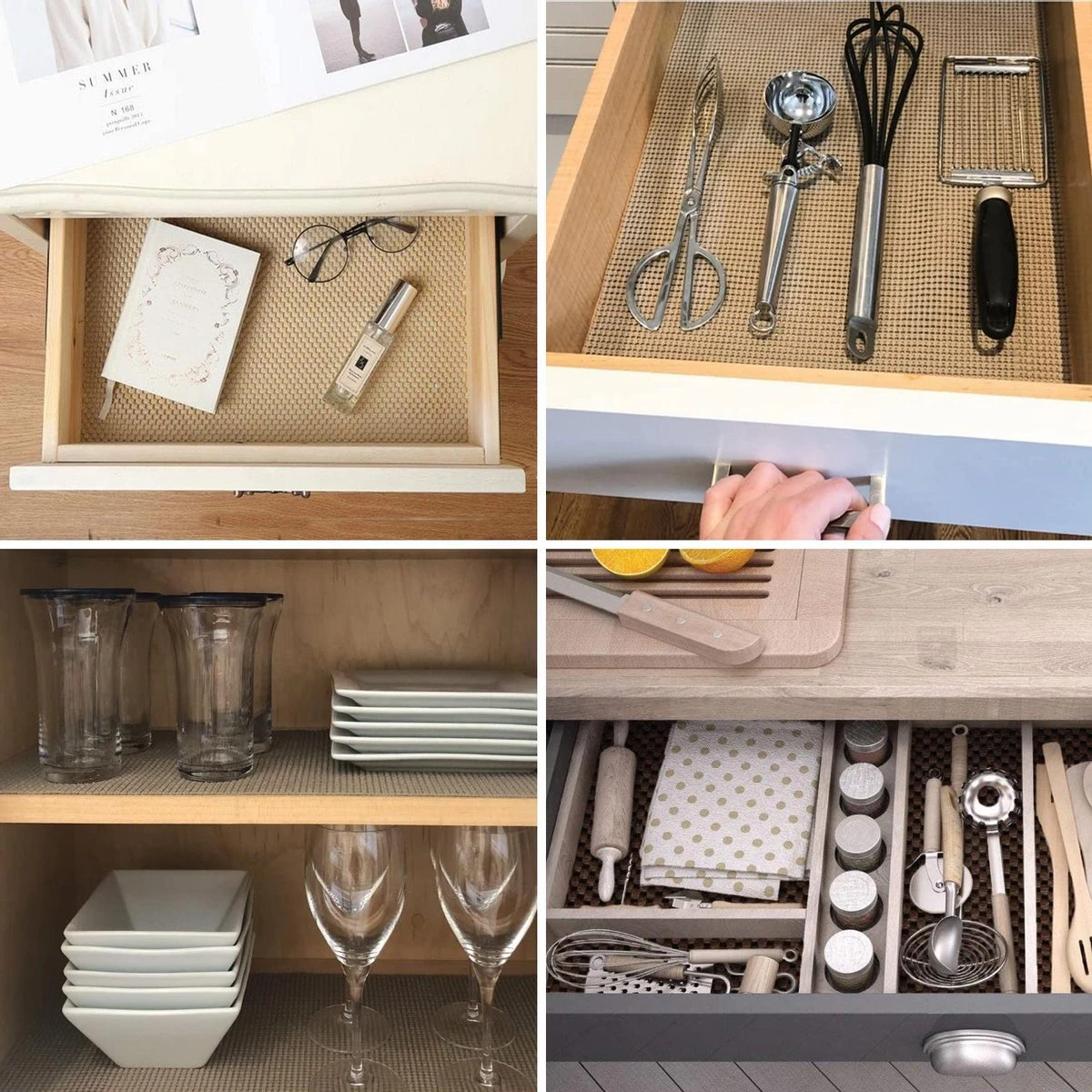 ➡️Potjes die omver liggen in je keukenlaatje? Kunstof glazen die omvallen in de kastjes van je caravan? Pennen die niet op hun plek blijven liggen in de lade? Voorkom het schuiven en omvallen van jouw spullen door gebruik te maken van de Swilix antislipmatjes. Knip ze op maat en leg ze in je keukenlade, schuiflades en laatjes van je Caravan of Camper.