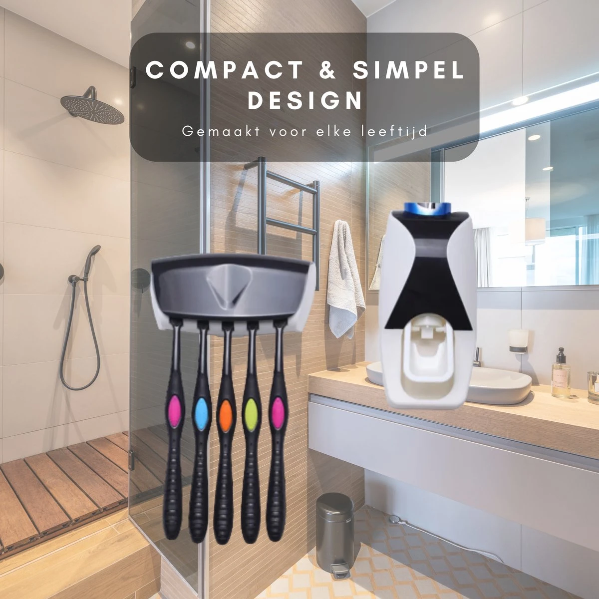 - De badkamer ziet er strak uit zonder los liggende tandenborstels