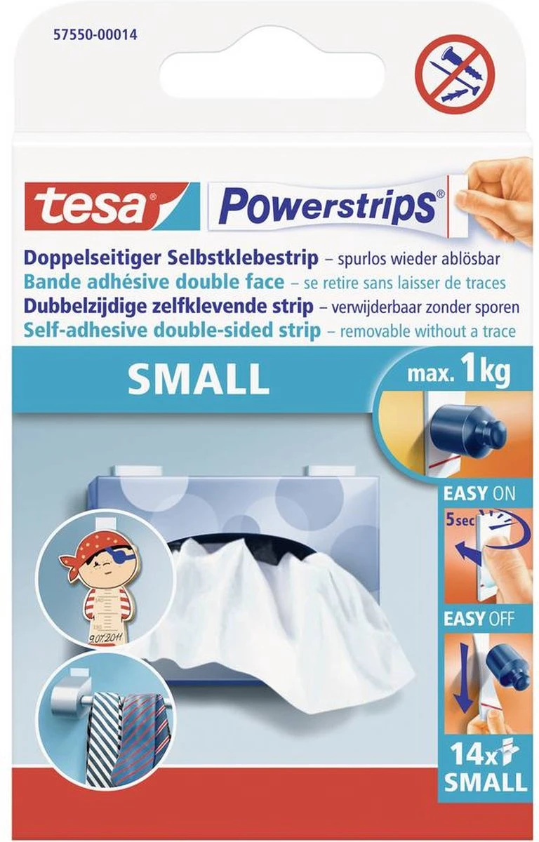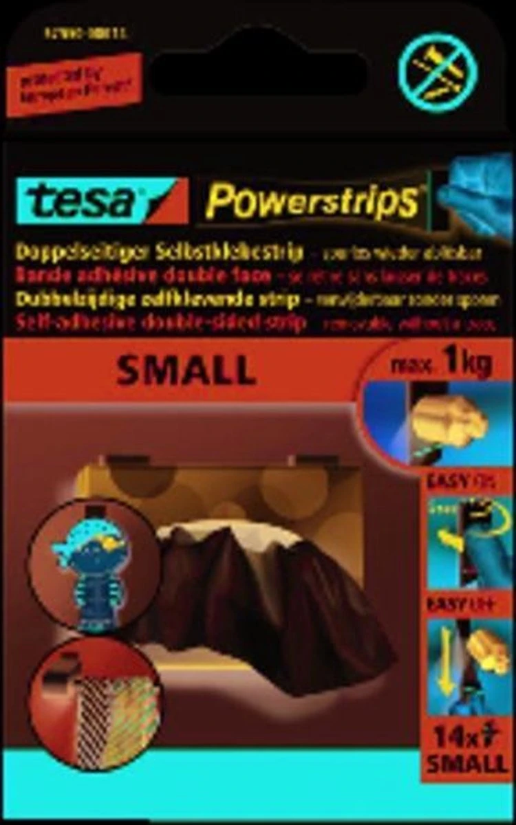 Tesa Powerstrips strips small 10 stuks zijn kleefstrips om je haakjes opnieuw mee op te hangen. Als je al Tesa Powerstrip haken hebt, kun je deze kleefstrips gebruiken om je haakjes weer opnieuw op te hangen of ergens anders. De smalle kleefstrips kunnen tot 1 kilo houden en zitten per 14 in een doosje.