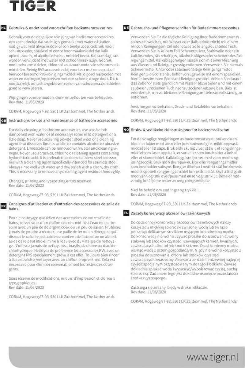 De toiletrolhouder is tevens geschikt voor montage met TigerFix type 2, waarmee accessoires snel en eenvoudig op een gladde, harde ondergrond te bevestigen zijn door middel van een gepatenteerd lijmsysteem. Boren is niet noodzakelijk en de accessoires zijn eenvoudig te verwijderen zonder dat er resten op de ondergrond achterblijven. TigerFix is apart verkrijgbaar.