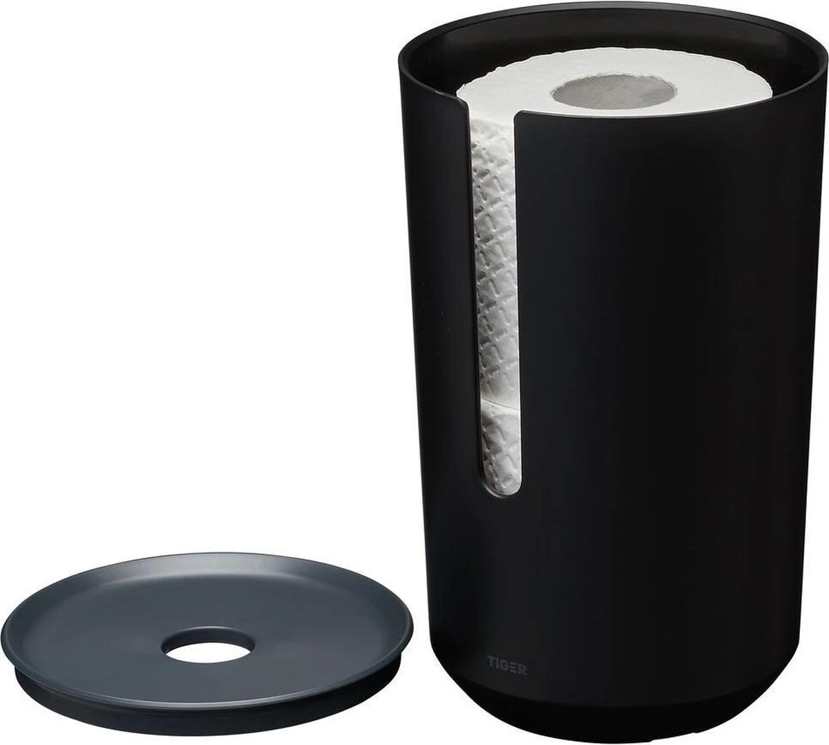 Opgeruimd staat netjes. Deze zwarte reserverolhouder met antracietkleurige deksel van Tiger Tess heeft een eigentijdse look en is ontzettend functioneel. De zachte, ronde vormen zorgen voor een vriendelijke en frisse uitstraling. De reserverollen berg je gemakkelijk op en dankzij de ronde opening is de deksel eenvoudig te openen. Wij zeggen, opbergen maar. Tiger Tess is innovatief en eigentijds met de herkenbare kwaliteit van Tiger. Deze serie is ontworpen door ons Design Lab en heeft een erkenning gekregen van Goed Industrieel Ontwerp (GIO).