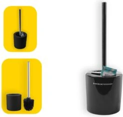 Toiletborstel met zwarte borstel- Keramiek – zwart – RVS – WC Borstel in Ronde Houder