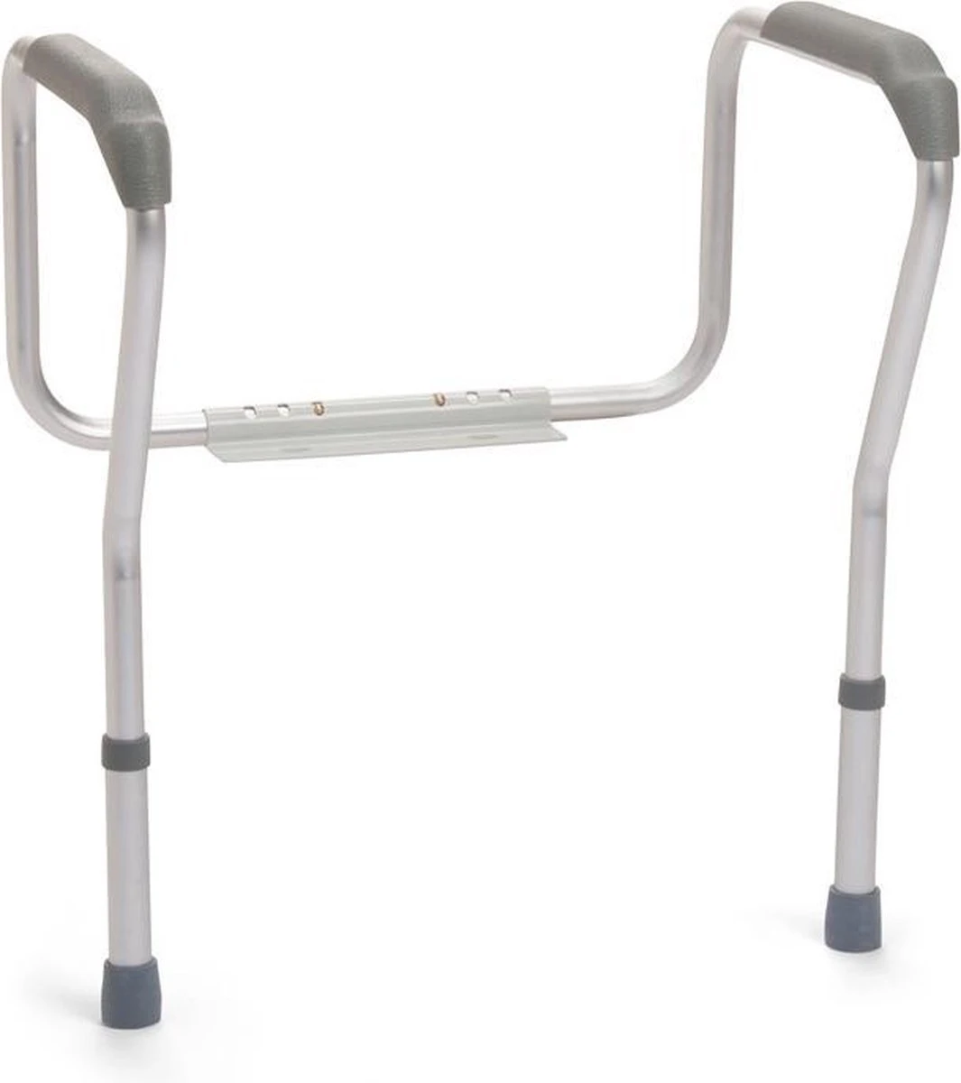Ook in de breedte is de steun instelbaar in 3 standen zodat deze op elk soort toilet past en te monteren is. Aan de poten aan de voorzijde zijn stevige antislip doppen bevestigd zodat deze veilig blijven staan.