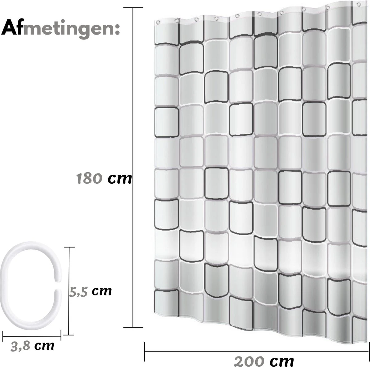Met dit douchegordijn kan je niet misgrijpen. Het douchegordijn is voorzien van een modern en tijdloos blokjes patroon dat je badkamer laat stralen. Het gordijn laat niet door zich heen kijken en biedt daarmee volledige privacy tijdens het douchen.