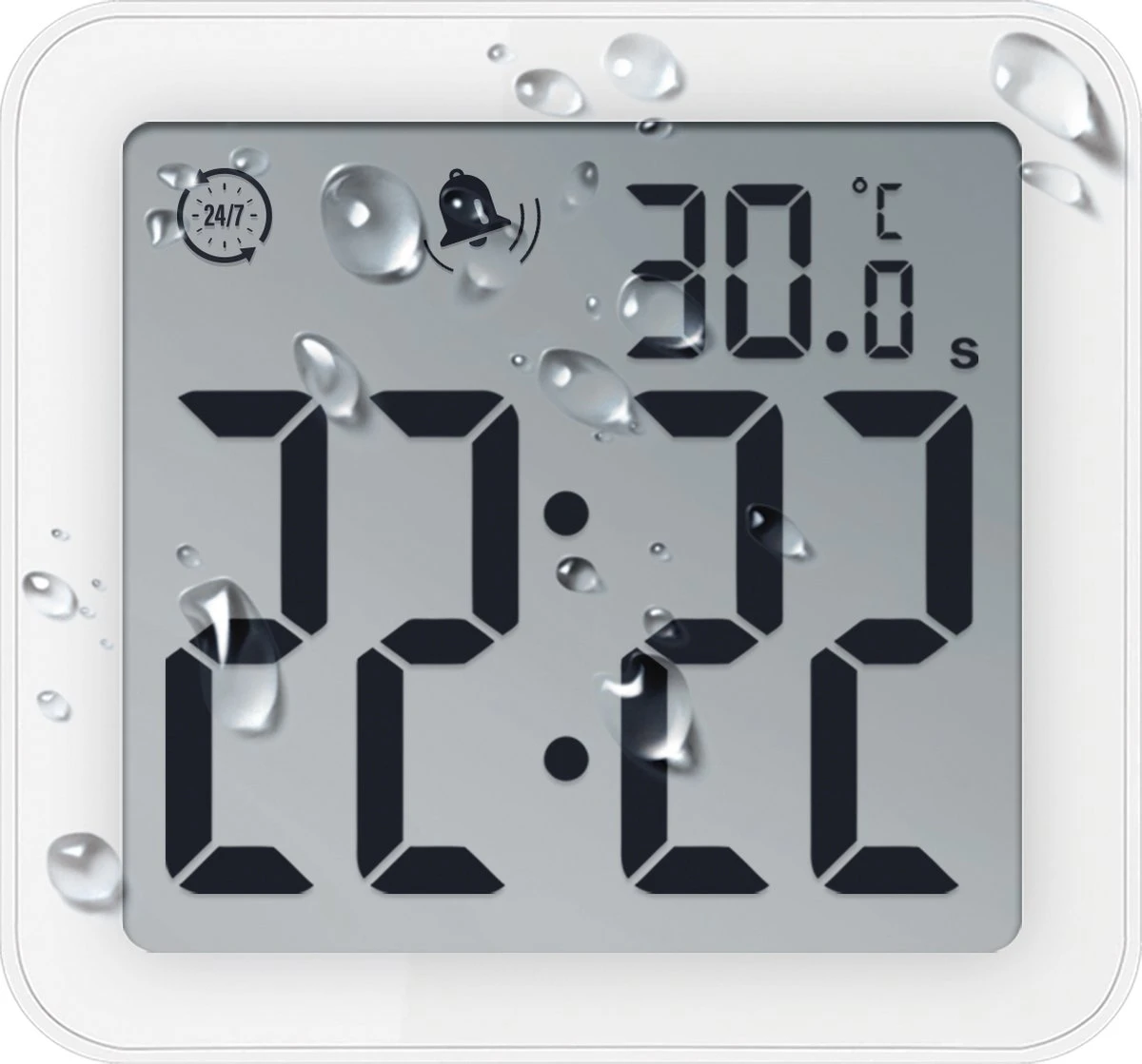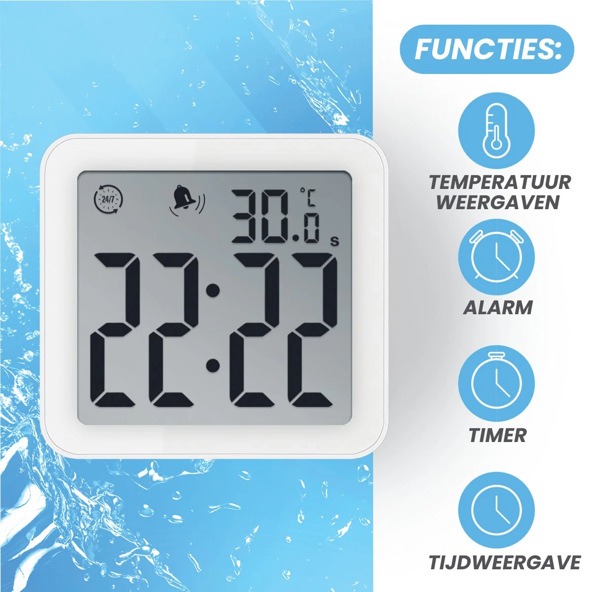 De doucheklok is waterdicht en heeft een anti-condensscherm. Het gemakkelijk te lezen Lcd-scherm biedt brede kijkhoeken en is overal eenvoudig af te lezen. Gebruik de tafelstandaard of plak de timer vast aan badkamermuren of spiegels. De timer is speciaal ontworpen voor doucheruimtes, maak je geen zorgen over vallen of gebruik in een natte omgeving.