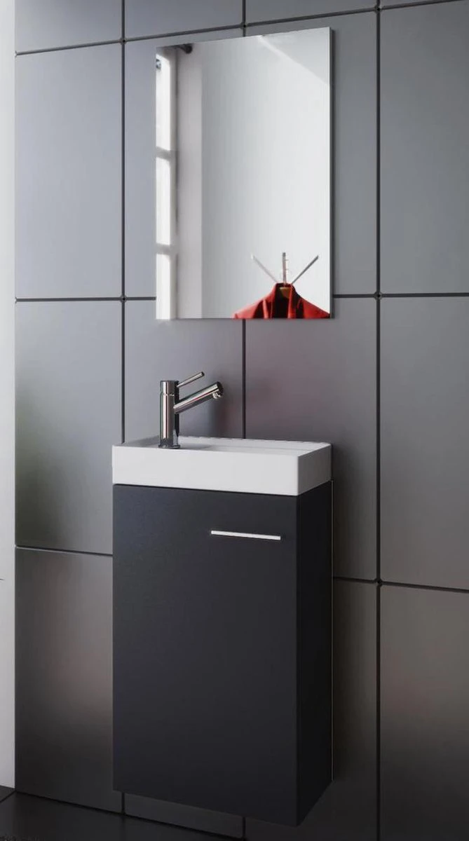 De wastafel is een klein wonder van ruimte. De set bestaat uit een spiegel en een wastafel met badmeubel. Een zeer elegante inrichtingsoplossing voor toiletten of gastentoiletten om een visueel hoogtepunt te creëren. Highlights: – 1 spiegel van ESG veiligheidsglas – wastafelonderkast incl. wastafel – deur met edele reliëfgreep – 1 groot gesloten vak Afmetingen onderkast + wastafel Afmetingen ca. b. 41 x h. 68 x d. 22 cm Afmetingen spiegel Afmetingen ca. b. 40 x h 60 x cm VCM is al sinds de jaren 70 gespecialiseerd in het ontwerpen, produceren en distribueren van meubelen met een eerlijke prijs/prestatieverhouding en heeft er al miljoenen huishoudens mee verfraaid.