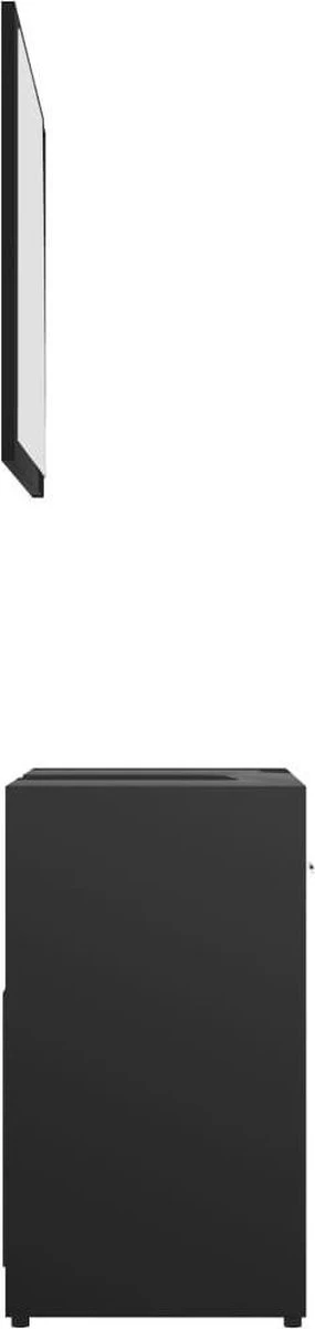 De meubelset, bestaande uit een spiegel en een kast, is gemaakt van duurzaam en stabiel bewerkt hout. Deze chique kast is voorzien van 1 vak en 2 deuren en biedt voldoende opbergruimte om spullen in je badkamer op te bergen. Elke deur heeft een handgreep voor gemakkelijk openen en sluiten. De spiegel geeft je interieur een prachtige uitstraling. Deze badkamerset is gemakkelijk schoon te maken met een vochtige doek.