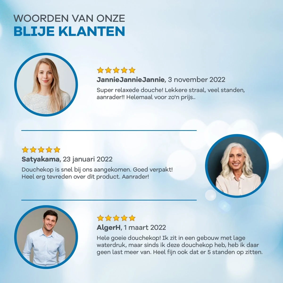• Ruime ervaring in douchekoppen